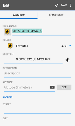 In many aspects the screen is similar to the point detail dialog. The map preview is missing and everything is set up for inserting new information rather than editing existing facts.