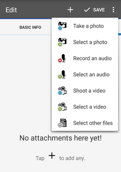 Contains files attached to the point - photos, videos, voice recordings, texts etc. To add any tap