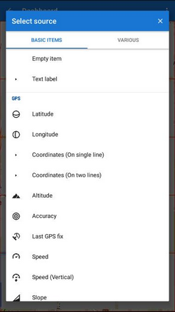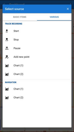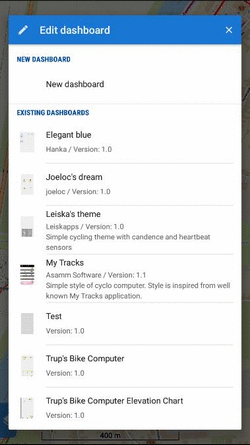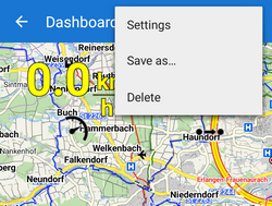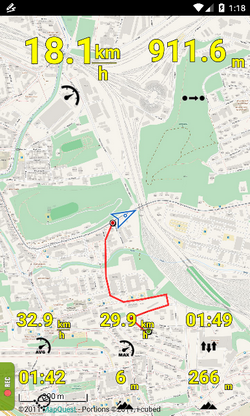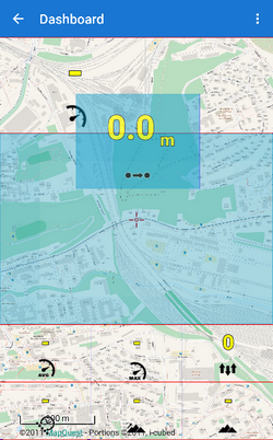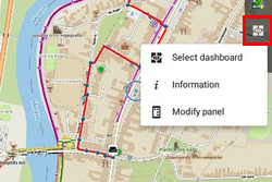 The dashboard is a unique solution for displaying additional information (digit and charts) above the map. It is useful for sports tracking, geocaching, navigation etc. The layer is touch-insensitive but it can contain some action buttons too - e.g. track recording controls.