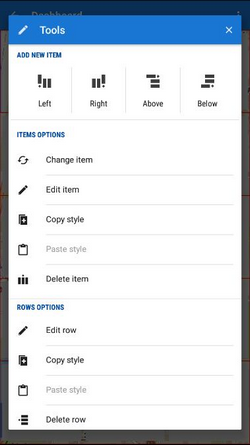 The principle of editing is the same as when creating a new dashboard but the main layout and some formatting is already done. Just select a dashboard that suits your needs the best from offered themes: