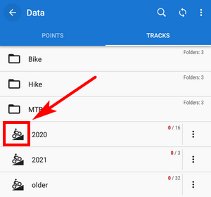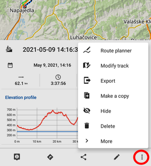 Each track or route consists of track- or route-points. Tapping the icon in the corner opens the detail screen with information about the particular point: