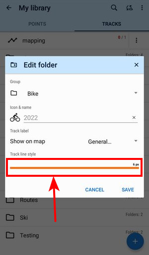 Style of individual tracks or routes can be edited in the track/route detail screen edit dialog: