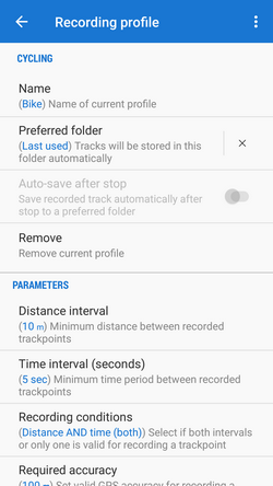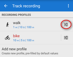 In these settings, you can edit an already created profile. If you want to add a new one Available only with Premium), go up one level in the settings hierarchy (settings > track recording).