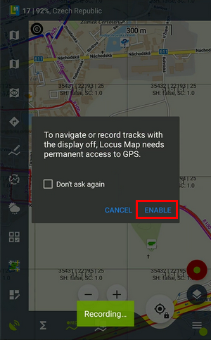 When you launch Locus Map and start some feature that runs in the background (voice navigation, track recording, live tracking…), Locus Map displays a compulsory warning: