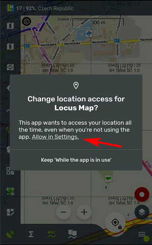 . Then you are prompted to allow all-time access to the location in the system settings: