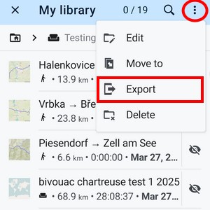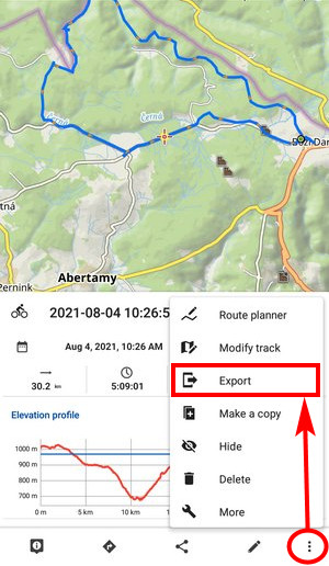Tracks and routes are exported to another device, to a desktop application or web service for further processing - displaying in a different environment, navigation, for editing, etc.