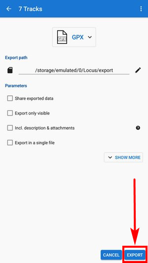 Tap the EXPORT button: