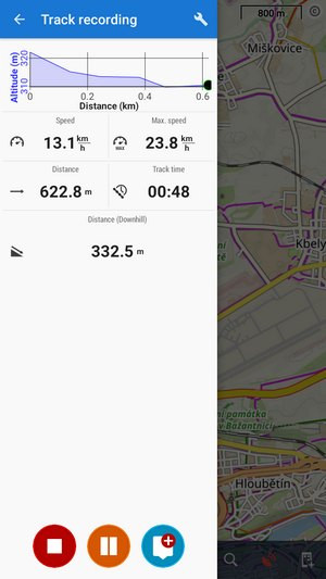 Recording a track is technically a continuous saving of a chain of trackpoints - places that are marked by unique GPS coordinates - like breadcrumbs that someone leaves behind when moving. The density of the trackpoints/breadcrumbs can be pre-defined in recording profiles and varies according to used activity - walk, run, biking or driving by car. The faster the activity, the less dense are the trackpoints and the longer is the supposed traveled distance.